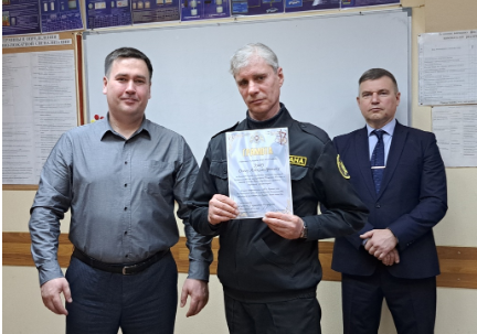 Грамотами от Росгвардии за большой вклад в развитие частной охранной деятельности на территории Томской области награждены бойцы ГБР Олег Зуев, Евгений Внуков и Сергей Климов.